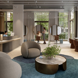 Pause and take a breath. The atrium at Vinohradská 8 is designed to balance a dynamic work environment. Carefully placed greenery, mature trees, and modern outdoor furniture create an inspiring space for informal meetings, quick breaks, or moments of focus outside the office. The atrium smoothly connects to the lively ground floor with cafes, shops, and services, while also providing quiet spots for privacy and relaxation throughout the day. The mix of natural elements and contemporary architecture forms the green heart of the complex—a place that promotes energy, balance, and daily well-being, all within the center of Prague.