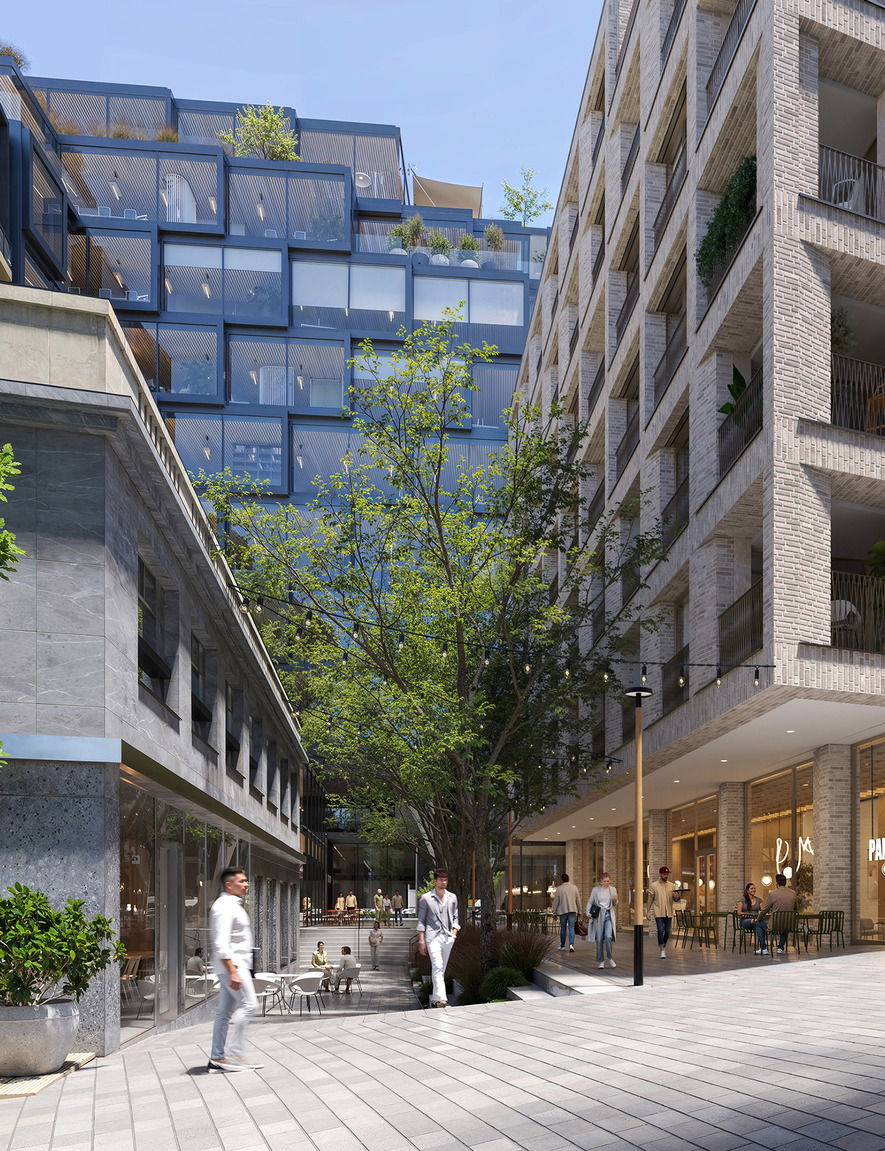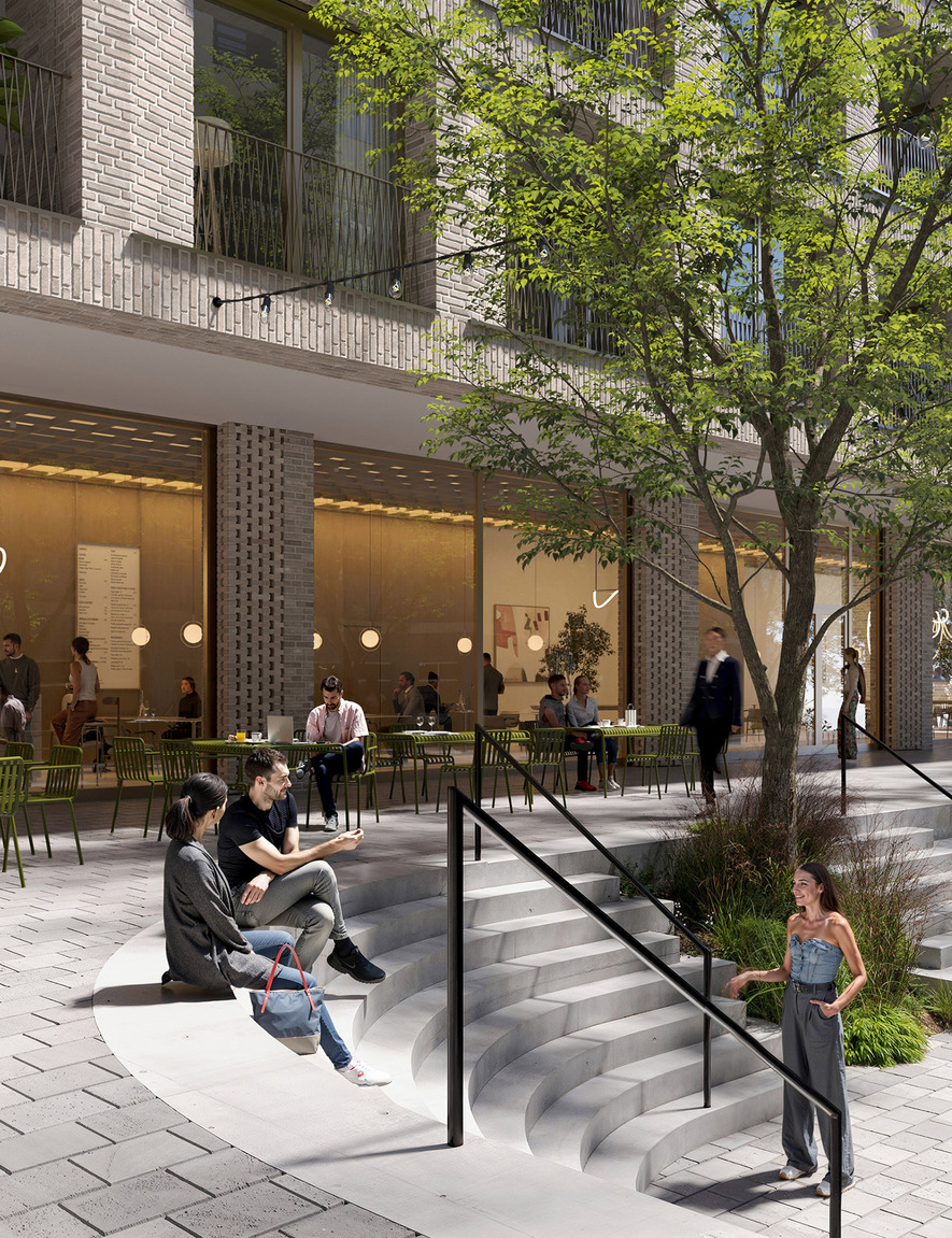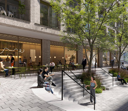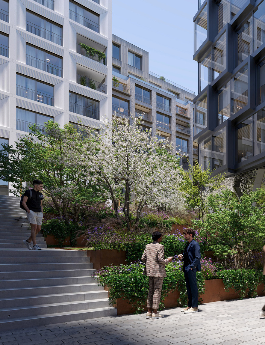 - New planting helps reduce urban temperatures, while light-colored paving and façades contribute to minimizing the urban heat island effect.